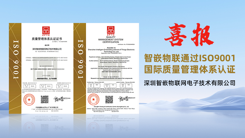喜报 | 智嵌物联通过ISO9001国际质量管理体系认证