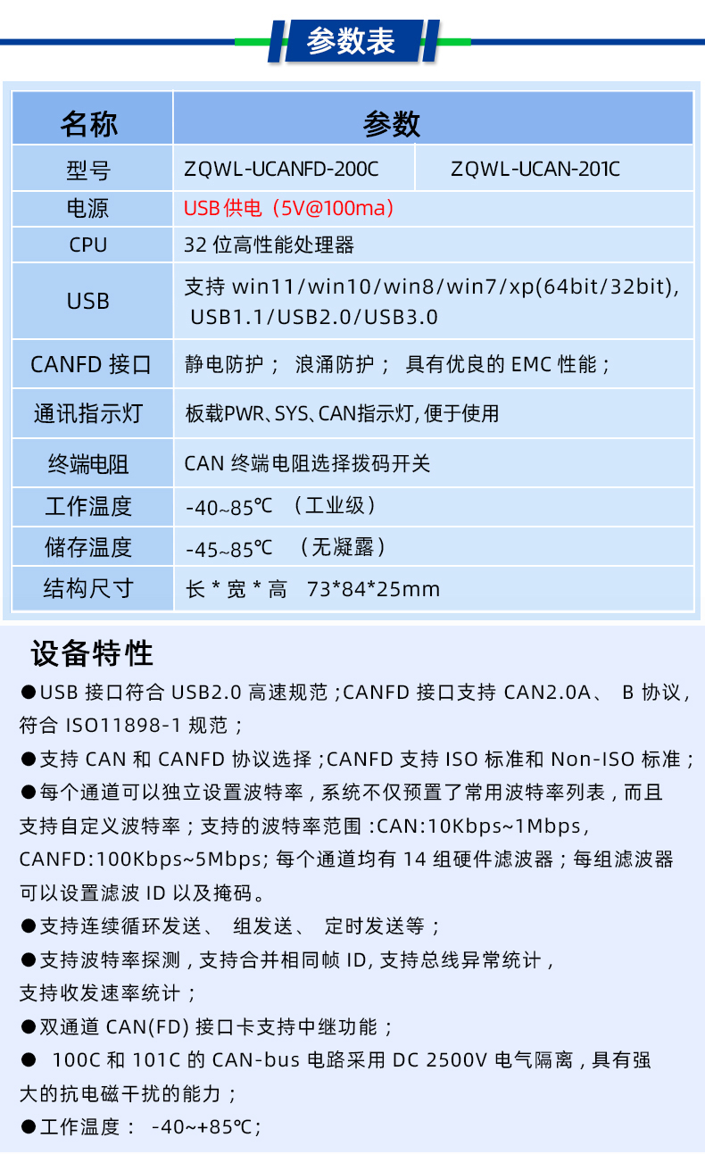 智嵌物联 ZQWL 开发的一系列高性能 USBCAN(FD)接口卡,具有类型多,安装方式灵活,方便易用,功能强大等特点。接口卡支持 XP/Win7/Win10/Win11 等操作系统。