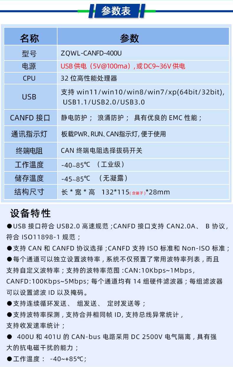 智嵌物联 ZQWL 开发的一系列高性能 USBCAN(FD)接口卡,具有类型多,安装方式灵活,方便易用,功能强大等特点。接口卡支持 XP/Win7/Win10/Win11 等操作系统。ZQWL-UCANFD-400U/ZQWL-UCAN-401U,CAN(FD)通道均采用电气隔离设计,可以适用于电磁环境恶劣的的场合。