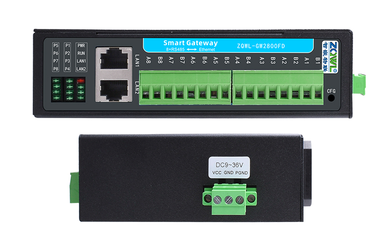 智嵌物联自主研发的串口服务器 ZQWL-GW2800FD,具有 2 路网口、8路RS485,通讯带隔离,。CPU 采用 ARM9 内核处理器,系统采用 Linux 系统,内部集成了 TCP/IP 协议栈,可实现串口到以太网口数据的双向透明传输、ModBus 协议转换等功能。设备通过简单的配置,即可轻松实现串口设备的联网、上云等功能。广泛应用于机房监控、智慧农业、环境监控、智能交通、道闸控制、智能快递柜等行业。