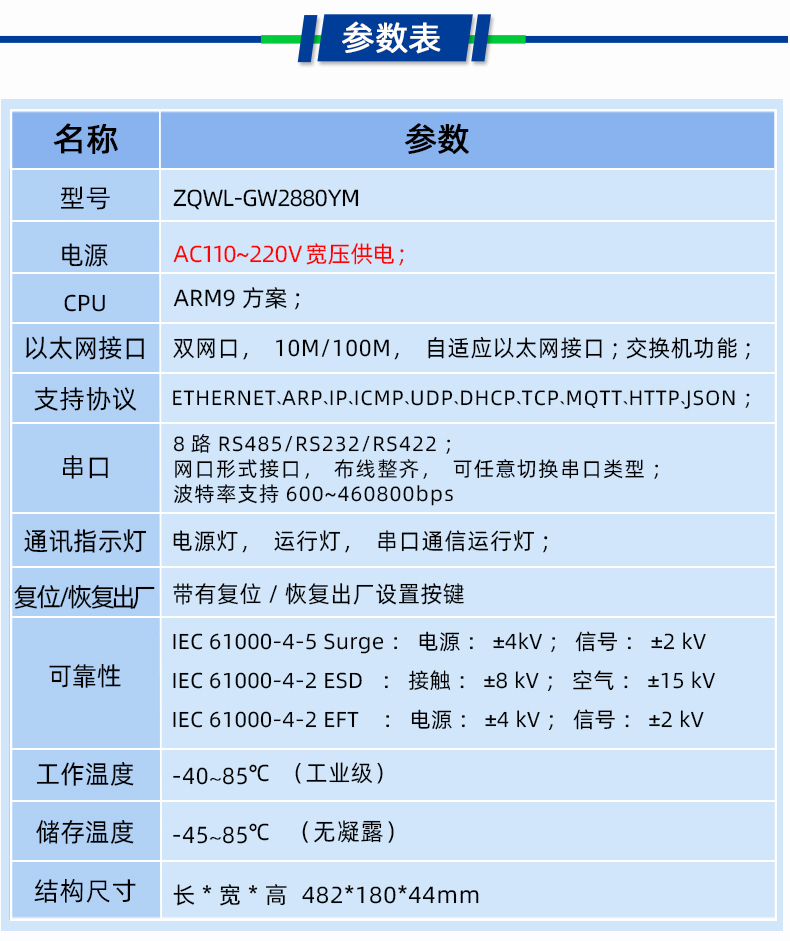 智嵌物联自主研发的串口服务器 ZQWL-GW2880YM,具有 1 路网口,8 路 RS485、8 路 RS422、8 路 RS232 接口(每一个串口(PORT)同一时间只能用一种接口功能)。CPU 采用 ARM9 内核处理器,系统采用 Linux 系统,内部集成了 TCP/IP 协议栈,可实现串口到以太网口数据的双向透明传输、ModBus 协议转换等功能。设备通过简单的配置,即可轻松实现串口设备的联网、上云等功能。广泛应用于机房监控、智慧农业、环境监控、智能交通、道闸控制、智能快递柜等行业。