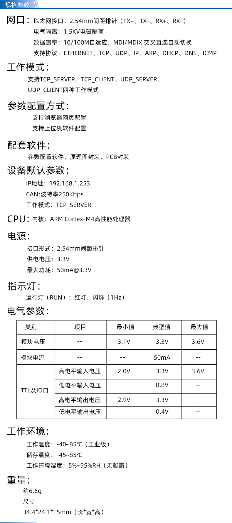 智嵌物联/ZQWL出品的ZQWL-CANET-3B111(以下简称 3B111)是实现 CAN 总线(TTL 电平)与以太网的数据相互转换的设备。设备的网络参数(如 IP)和 CAN 参数(波特率等)都可以通过配置软件或者网页的方式修改。