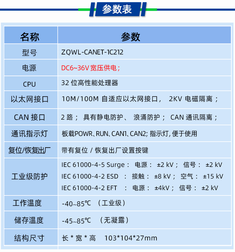 智嵌物联/ZQWL出品的ZQWL-CANET-1C212(以下简称 1C212)是实现 2 路 CAN 总线与以太网的数据相互转换的设备。设备的网络参数(如 IP)和 CAN 参数(波特率等)都可以通过配置软件或者网页的方式修改。