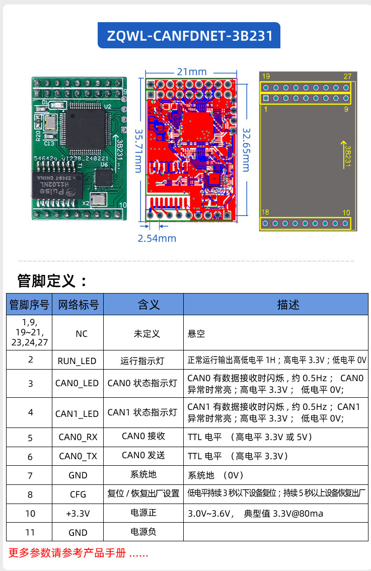 ZQWL-CANFDNET 系列产品,是智嵌物联开发的高性能工业级以太网与 CAN(FD)-bus数据转换的设备。设备型号齐全,按 CAN(FD)通道数可分为单路、双路和 4 路,CAN(FD)总线既有带隔离的,有非隔离的。按照网口数可以分为单网口和双网口(交换机功能),10/100M 自适应,其中双网口类型设备,非常方便用户级联使用。该系列所有产品均可工作在-40℃~85℃,其中隔离型产品具有优秀的抗电磁干扰性能,适用于电磁环境恶劣的的场合。