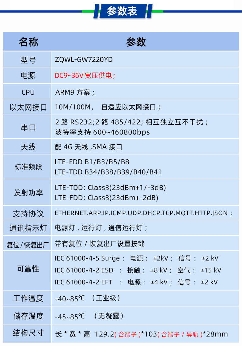 集4G工业路由器、4GDTU、4GRTU、串口服务器、Modbus网关于一体;简单设置即可实现串口设备、网口设备的4G联网;支持多种网络协议:MQTT协议、HTTP、TCP、UDP、Web Socket等。