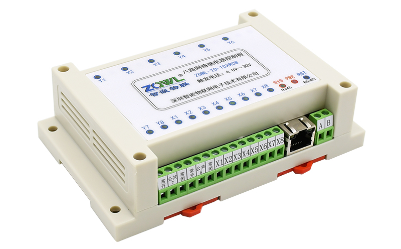 智嵌物联/ZQWL出品的 8 路网络继电器设备,是一款 8 路 NPN 和 PNP 兼容型光电输入、8 路继电器输出的工业级 IO 控制板。控制板具有 1 路以太网口和 1 路 RS485 通讯接口,可以通过 Modbus TCP/RTU 或自定义协议实现对该控制板的控制,也可以通过本公司开发的上位机控制软件控制。本控制板具有串口服务器功能(网络和 RS485 数据互相转换)。