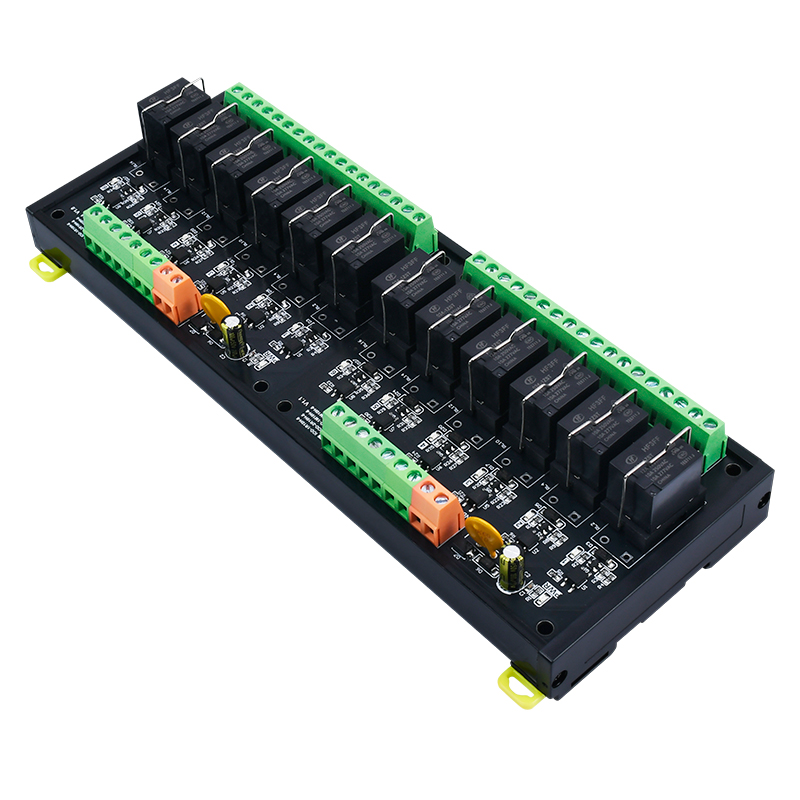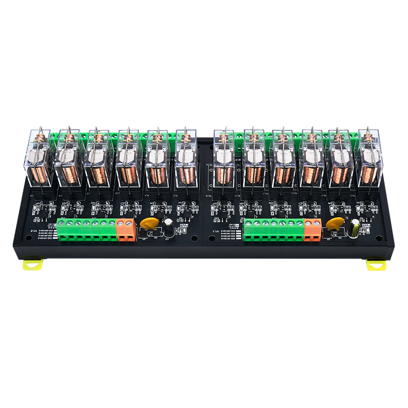 12路宏发/欧姆龙光耦隔离型继电器模组,是实现开关量采集(输入)和继电器输出的 IO 控制板,广泛运用于控制灯光、交流接触器、电机、门禁、电磁阀等;产品采用光耦隔离放大输入信号,3KV 的隔离电压有效保护电路。兼容 NPN/PNP 输入,丰富的 LED 状态指示运行灯,外壳采用高品质阻燃材料,耐高温、腐蚀。继电器输出负载电流 10A,继电器品牌宏发和欧姆龙可选。