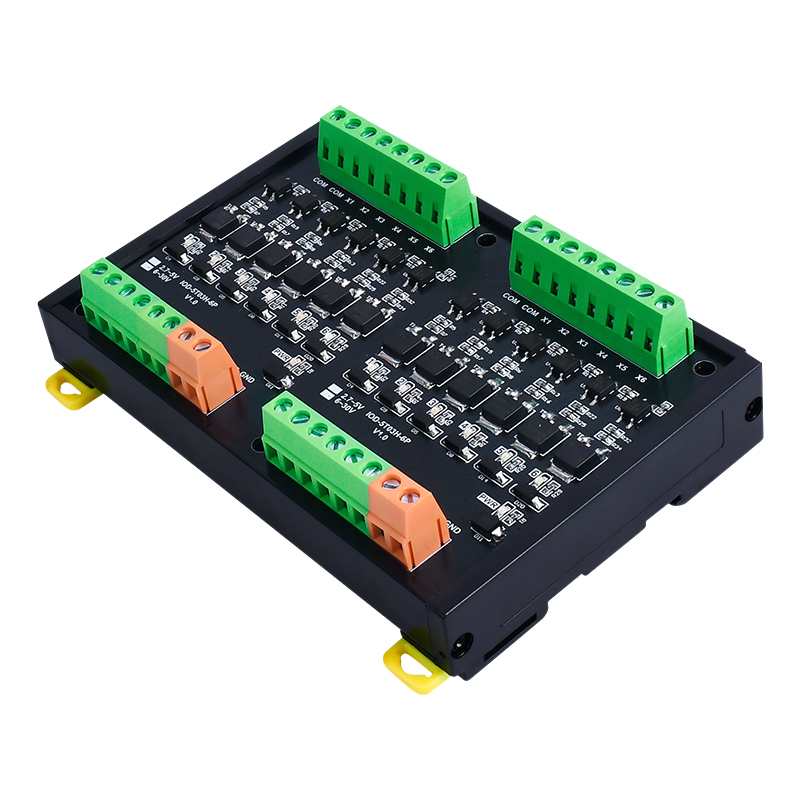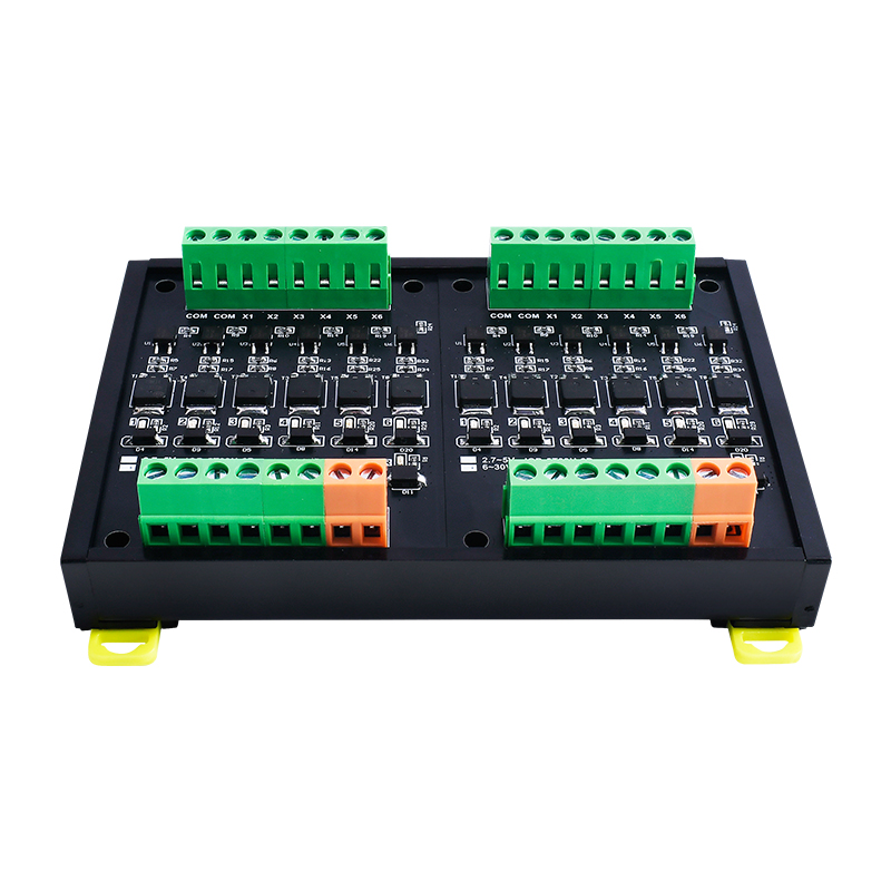 12路光耦隔离型晶体管模组,是实现开关量采集(输入)和晶体管 NPN/PNP 输出的 PLC 放大板,广泛运用于工业控制系统中输入设备与输出设备之间的隔离,电流放大,提高带载能力。产品采用光耦隔离放大输入信号,3KV 的隔离电压有效保护电路。兼容 NPN/PNP 输入,且 NPN/PNP 输出可选,丰富的 LED 状态指示运行灯,外壳采用高品质阻燃材料,耐高温、腐蚀。继电器输出负载电流 10A,晶体管采用高品质场效应管 P 沟道和 N 沟道可选。