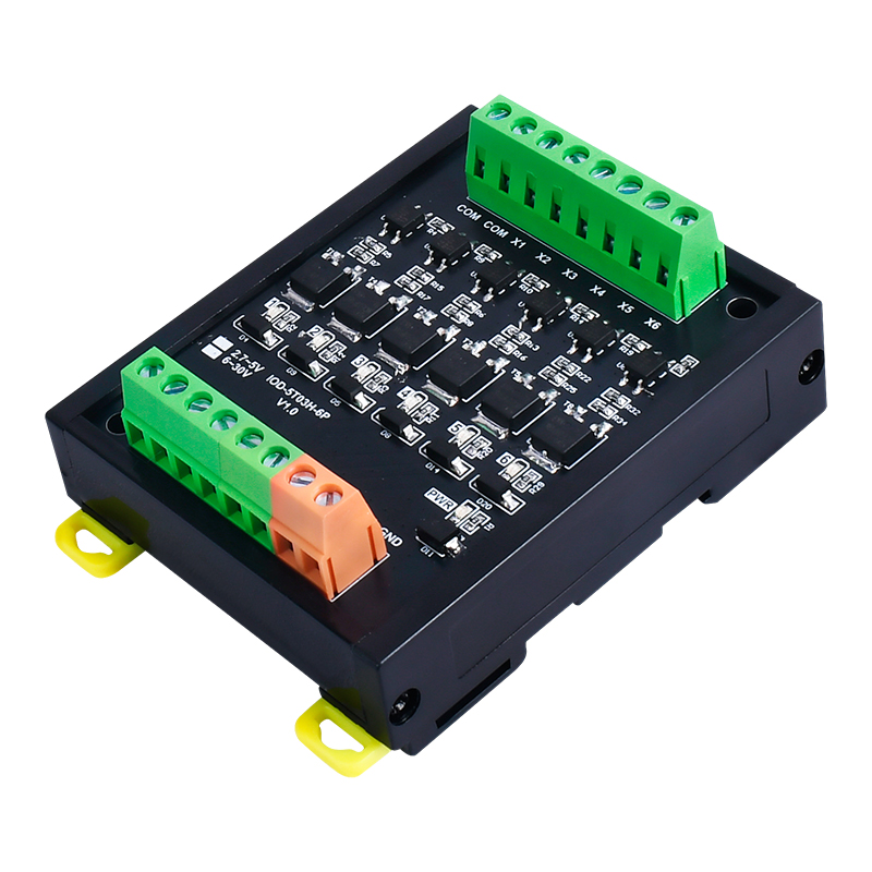 6路光耦隔离型晶体管模组,是实现开关量采集(输入)和晶体管 NPN/PNP 输出的 PLC 放大板,广泛运用于工业控制系统中输入设备与输出设备之间的隔离,电流放大,提高带载能力。产品采用光耦隔离放大输入信号,3KV 的隔离电压有效保护电路。兼容 NPN/PNP 输入,且 NPN/PNP 输出可选,丰富的 LED 状态指示运行灯,外壳采用高品质阻燃材料,耐高温、腐蚀。继电器输出负载电流 10A,晶体管采用高品质场效应管 P 沟道和 N 沟道可选。