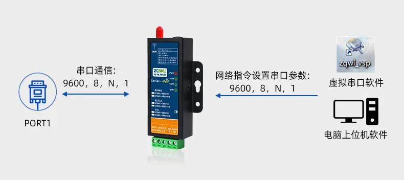 当需要改变串口参数时,通过网络向设备发送自设波特率的协议帧,设备收到协议帧后,会自动修改设备的串口参数。本次设置,本次生效,设备掉电则失效。