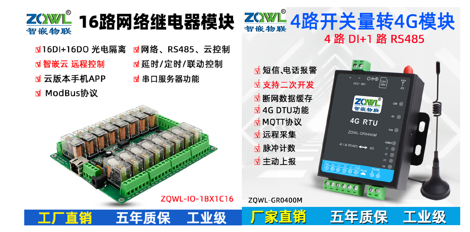 另外,智嵌物联ZQWL品牌其他网络产品,也适用此方法,如智嵌物联ZQWL网络IO继电器板控制器ZQWL-IO-1BXRC16、4G继电器控制板ZQWL-GR0400M等。