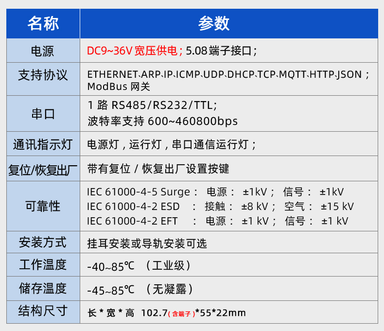 工业级防护(高等级防雷击、防静电、防群脉冲)