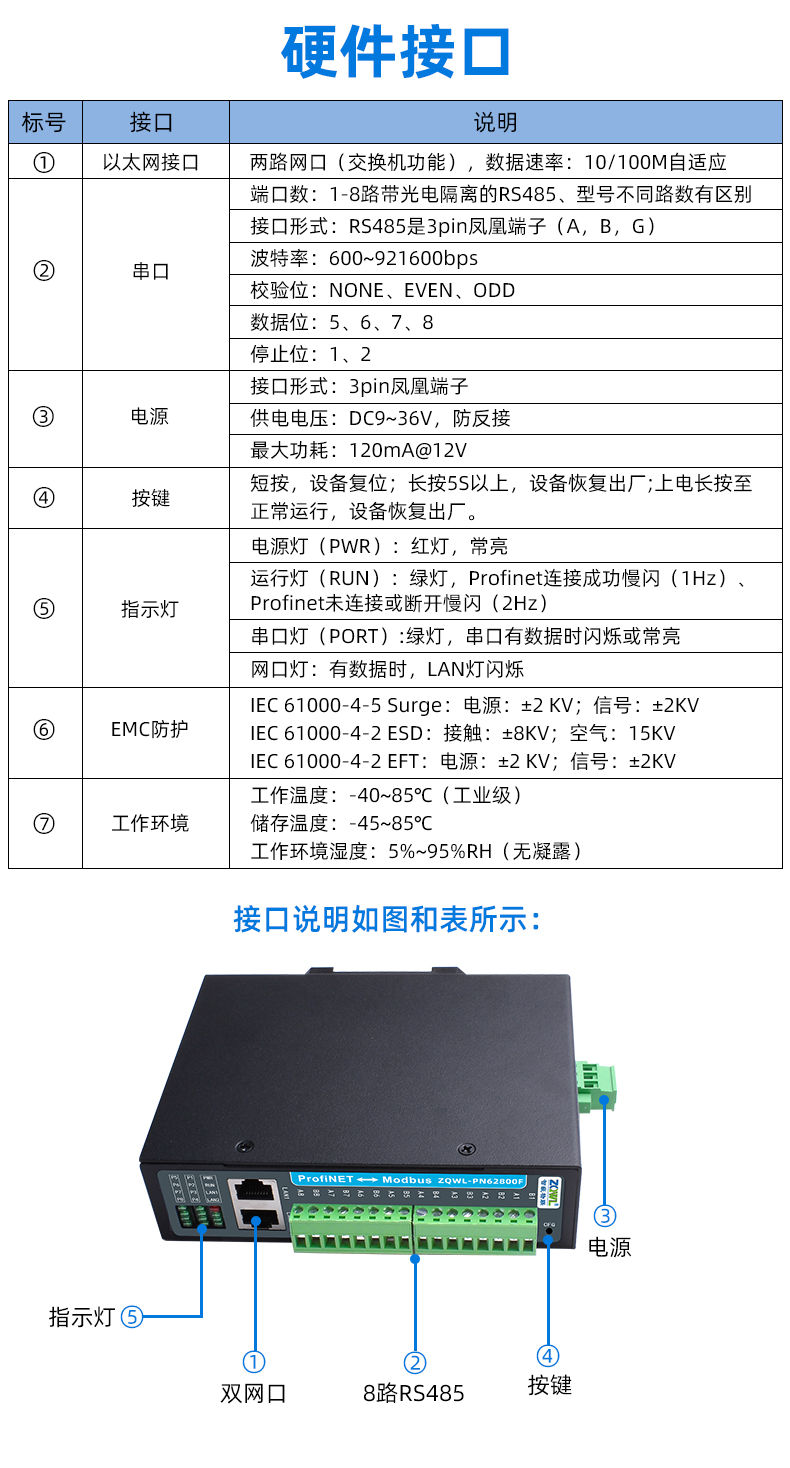 工业级防护、串口电源均进行了隔离具有静电、浪涌、电快速脉冲群等多重防护。