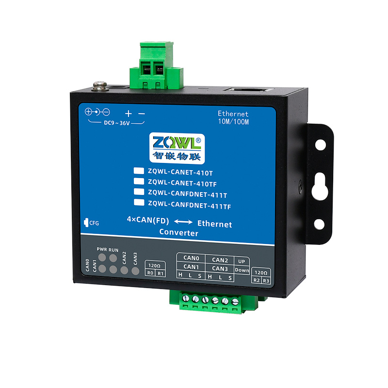 ZQWL - CAN(FD)NET 系列产品,是智嵌物联研发的具备高性能的工业级以太网与CAN(FD)数据转换设备。该设备型号丰富多样,依据 CAN(FD)通道数量,可分为2 路、4路、8 路;CAN(FD)总线提供隔离与非隔离两种选择。按照网口数量,又能分为单网口和双网口(具备交换机功能),支持 10/100M 自适应,双网口类型的设备便于用户进行级联操作。