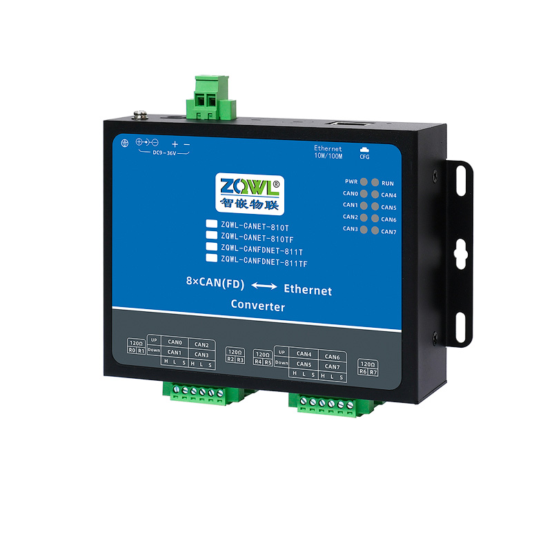 ZQWL - CAN(FD)NET 系列产品,是智嵌物联研发的具备高性能的工业级以太网与CAN(FD)数据转换设备。该设备型号丰富多样,依据 CAN(FD)通道数量,可分为2 路、4路、8 路;CAN(FD)总线提供隔离与非隔离两种选择。按照网口数量,又能分为单网口和双网口(具备交换机功能),支持 10/100M 自适应,双网口类型的设备便于用户进行级联操作。
