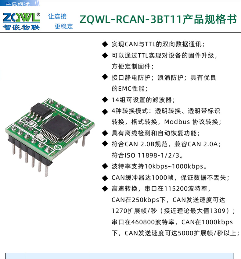 该系列串口转 CAN(FD) 智能协议转换器可以快速将 RS-232/485/422 通讯设备连接到CAN(FD)-BUS 现场总线。 转换器支持串口波特率范围 1200~921600bps,CAN(FD)-bus 波特率范围 5k~5Mbps。 转换器支持五种转换模式:透明转换、透明带标识转换、格式转换、Modbus转换以及带帧头帧尾转换。既可以通过配置软件配置参数,也可以通过 AT 指令配置参数,使用方便。