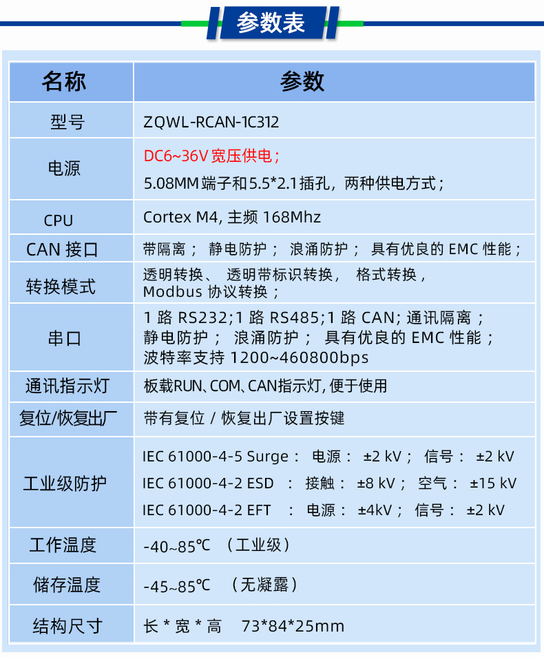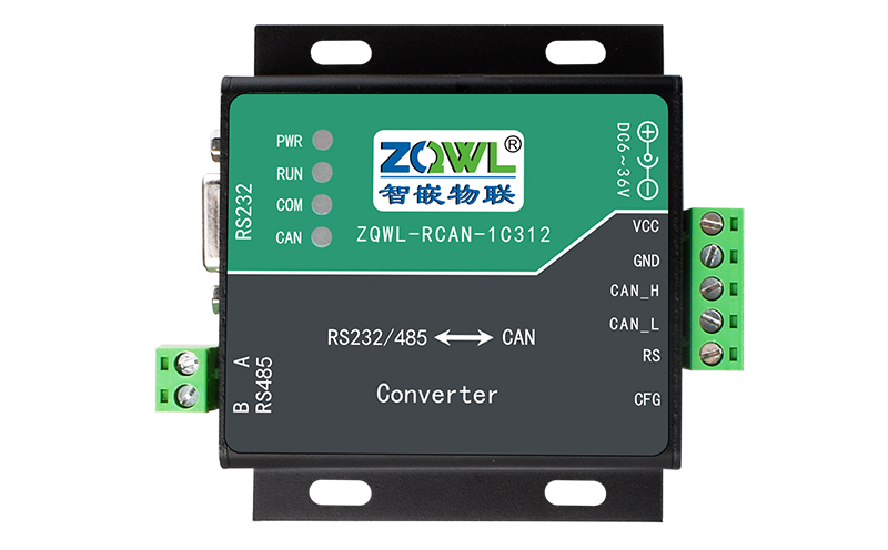 智嵌物联/ZQWL出品的ZQWL-RCAN-1C312(一下简称 1C312)是实现 RS232/RS485(不可以同时使用)与 CAN的数据相互转换的设备。设备的 CAN 参数(如波特率等)和串口参数(RS232 和 RS485)都可以通过配置软件修改。