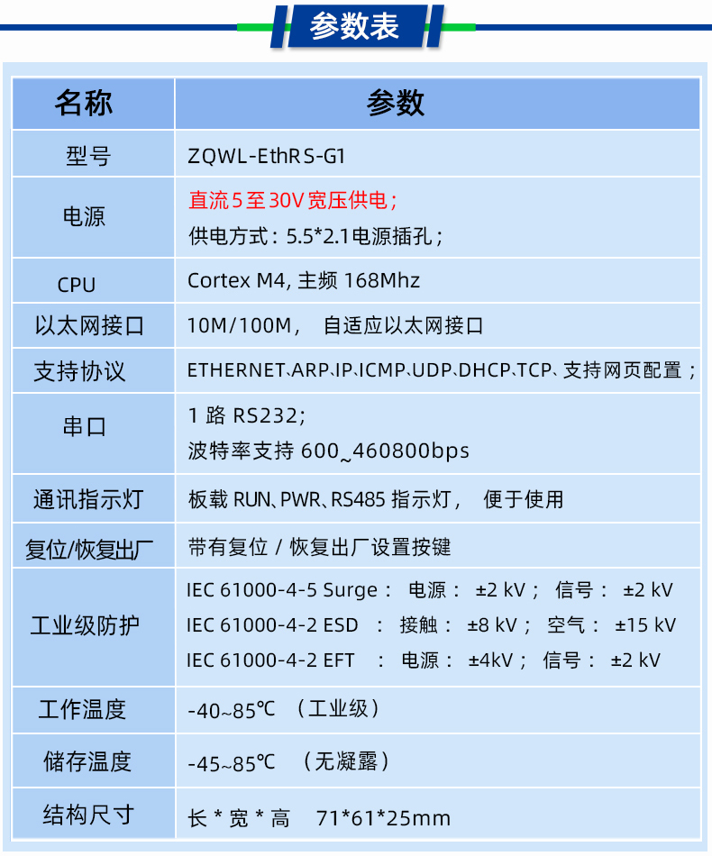 ZQWL-EthRS-G1是一款小巧精致、高性能、高稳定性的串口服务器模块。它具有1路RS232接口和1路以太网接口。用户利用它可以轻松完成RS232设备与网络设备的互联,节省人力物力成本。