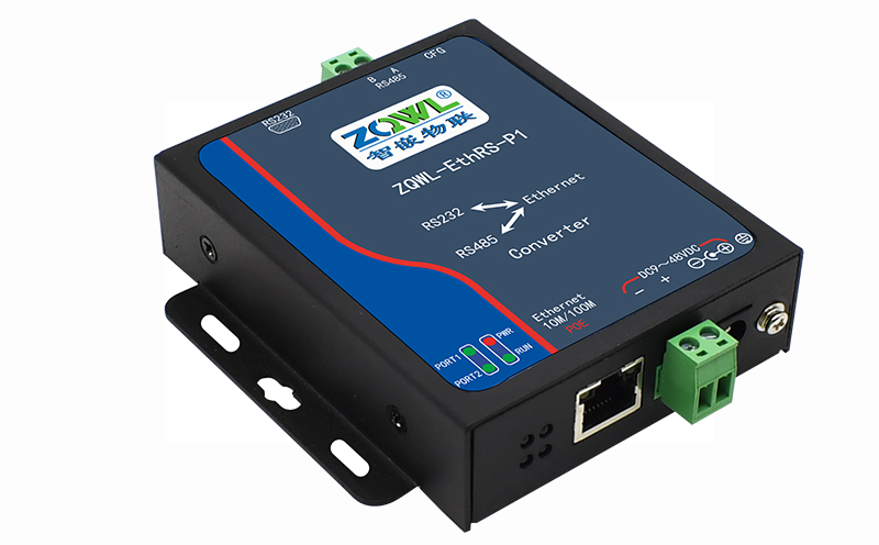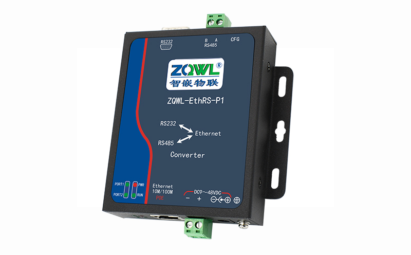 智嵌物联自主研发的串口服务器 ZQWL-EthRS-P1,具有 1 路网口、一路 RS485、一路 RS232 接口。支持标准 POE供电(802.3af),一根网线即可兼备数据传输和供电的双重能力。CPU 采用全新 ARM Cortex-M4 内核,内部集成了TCP/IP 协议栈,可实现串口到以太网口数据的双向透明传输、ModBus 协议转换等功能。设备通过简单的配置,即可轻松实现串口设备的联网、上云等功能。广泛应用于机房监控、智慧农业、环境监控、智能交通、道闸制、智能快递柜等行业。