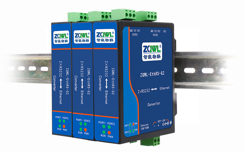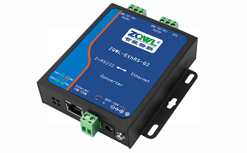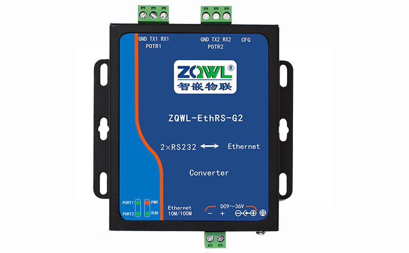 智嵌物联自主研发的串口服务器 ZQWL-EthRS-G2,具有 1 路网口、两路 RS232 接口。CPU 采用全新 ARM Cortex-M4内核,内部集成了 TCP/IP 协议栈,可实现串口到以太网口数据的双向透明传输、ModBus 协议转换等功能。设备通过简单的配置,即可轻松实现串口设备的联网、上云等功能。广泛应用于机房监控、智慧农业、环境监控、智能交通、道闸控制、智能快递柜等行业。