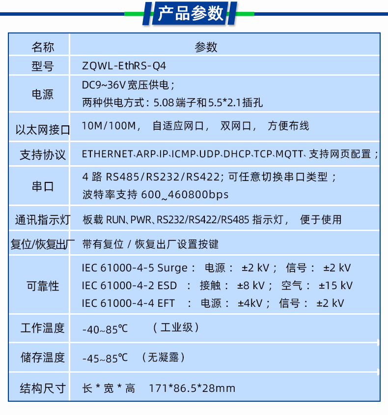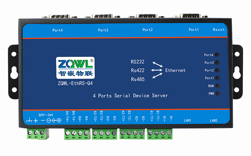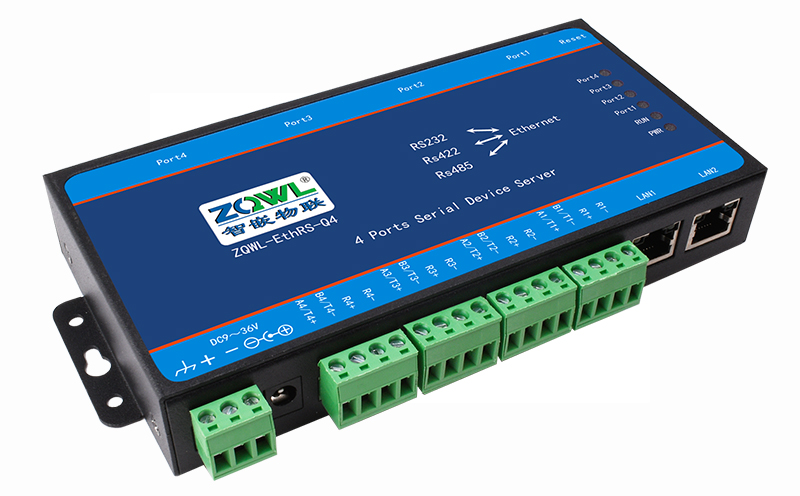 ZQWL-EthRS-Q4是一款高性能、高稳定性的工业串口服务器模块。它具有4路独立的RS485/232/422接口,接口具有2KV静电浪涌防护功能,抗干扰能力强;2路10M/100M自适应以太网接口,实现交换机功能,可以级联,方便布线(手拉手)。用户利用它可以轻松完成串口设备与网络设备的互联。