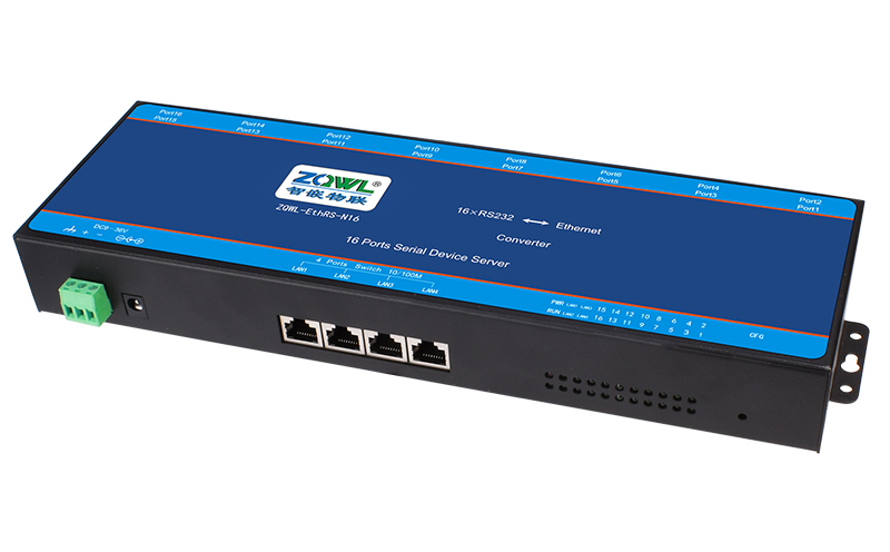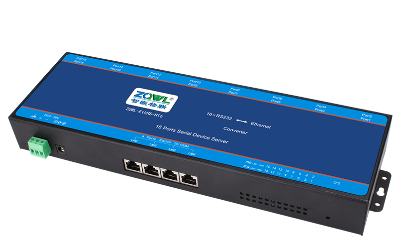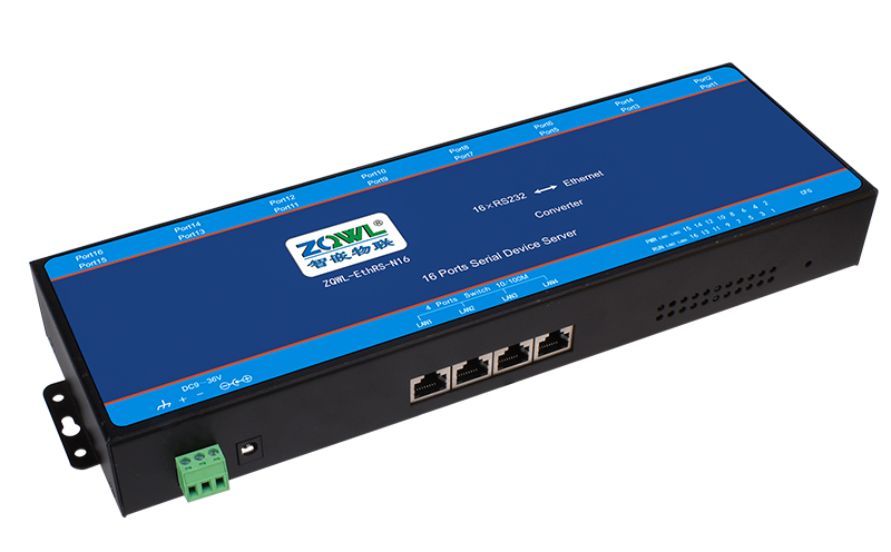 ZQWL-EthRS-N16是一款高性能、高稳定性的工业串口服务器模块。它具有16路独立RS232接口,接口具有2KV静电浪涌防护功能,抗干扰能力强;4路10M/100M自适应以太网接口(交换机功能)。用户利用它可以轻松完成串口设备与网络设备的互联。
