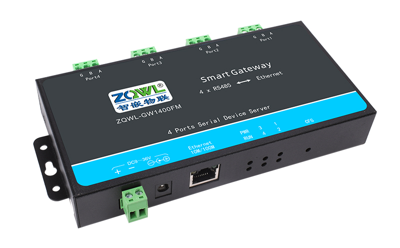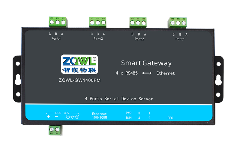 ZQWL-GW1400FM是一款宽压供电、通讯/电源全隔离、高性能、高稳定性的串口服务器模块,真正的工业级品质。它具有4路RS485接口和1路以太网接口,485选用超强驱动芯片,可以带多达256个节点。用户利用它可以轻松完成串口设备与网络设备的互联,节省人力物力成本。