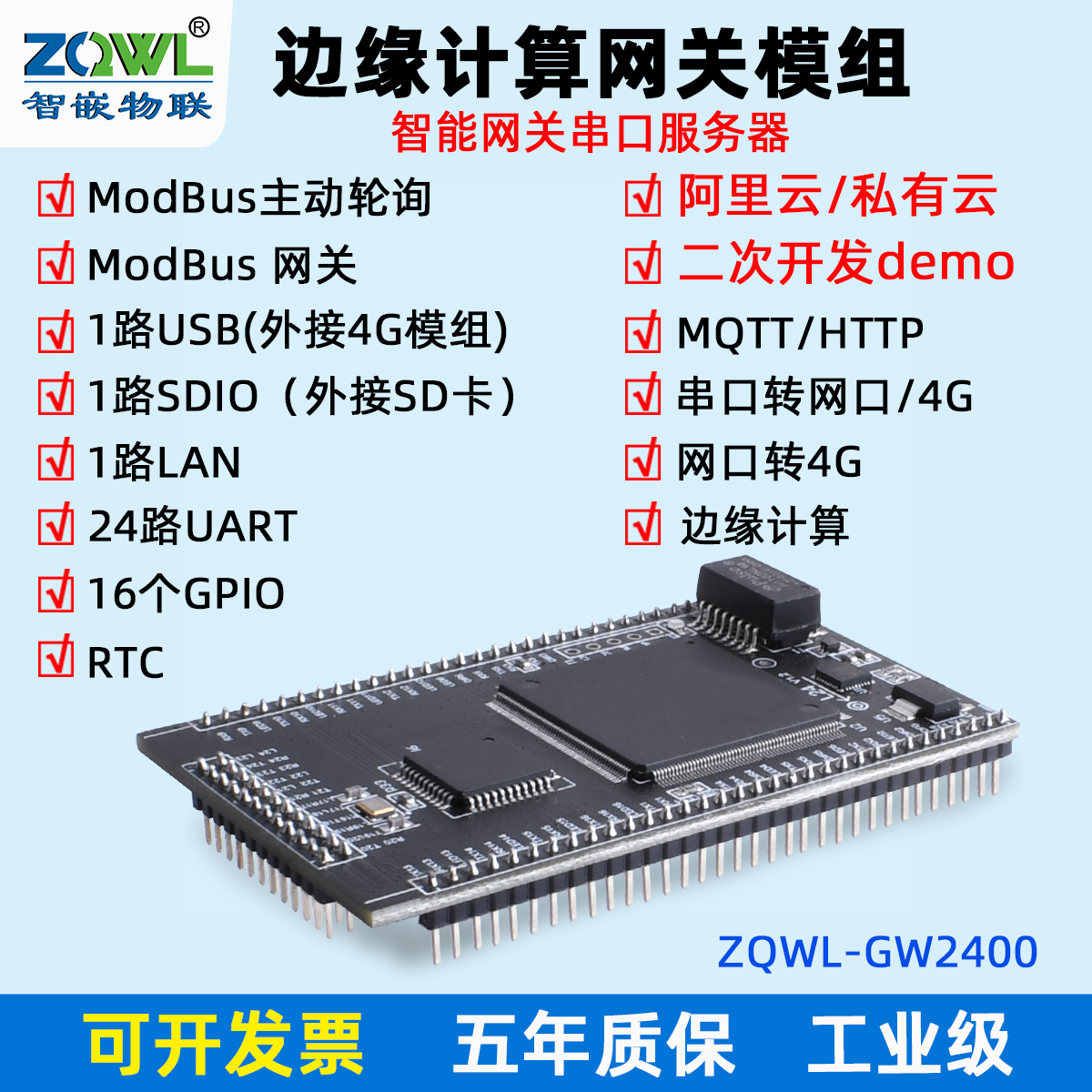 智嵌物联自主研发的串口服务器ZQWL-GW2400。CPU 采用 ARM9 内核处理器,系统采用 Linux 系统,内部集成了 TCP/IP 协议栈,可实现串口到以太网口数据的双向透明传输、ModBus 协议转换等功能。设备通过简单的配置,即可轻松实现串口设备的联网、上云等功能。广泛应用于机房监控、智慧农业、环境监控、智能交通、道闸控制、智能快递柜等行业。