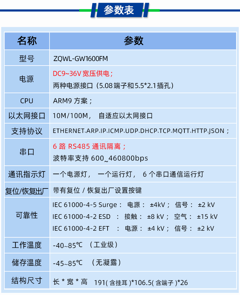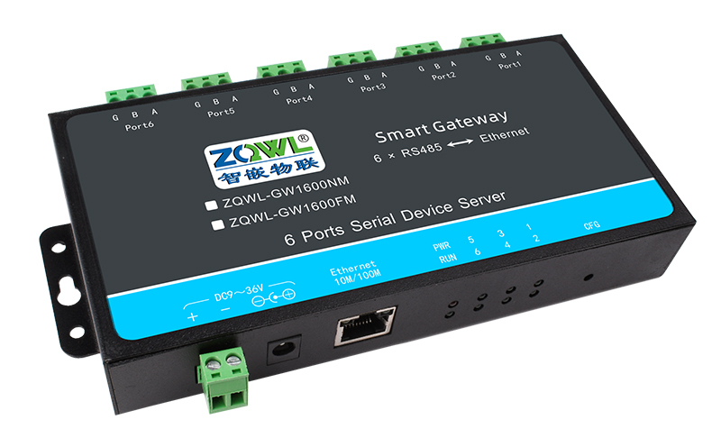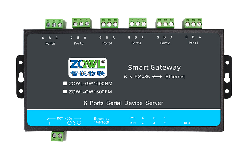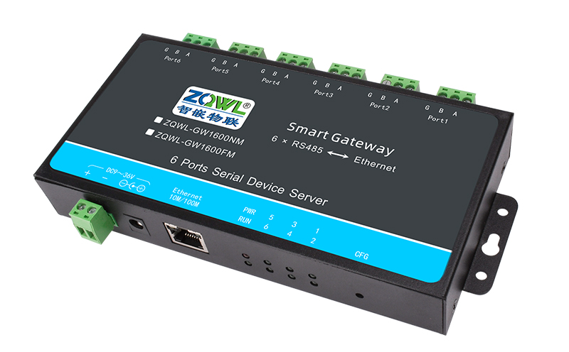 ZQWL-GW1600FM是一款宽压供电、通讯/电源全隔离、高性能、高稳定性的串口服务器模块,真正的工业级品质。它具有6路RS485接口和1路以太网接口,485选用超强驱动芯片,可以带多达256个节点。用户利用它可以轻松完成串口设备与网络设备的互联,节省人力物力成本。