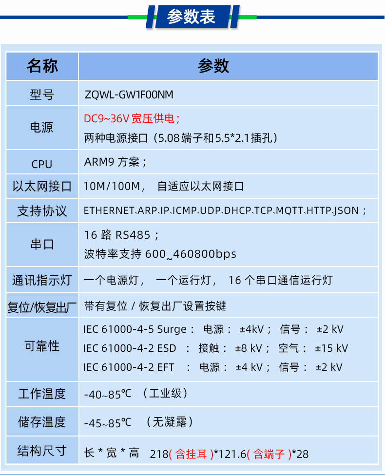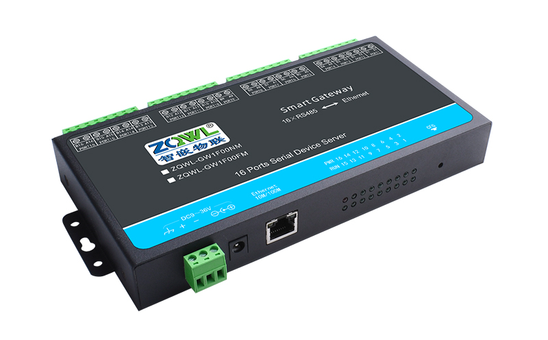 智嵌物联自主研发的串口服务器 ZQWL-GW1F00NM,具有 1 路网口、16 路 RS485 接口。CPU 采用 ARM9 内核处理器,系统采用 Linux 系统,内部集成了 TCP/IP 协议栈,可实现串口到以太网口数据的双向透明传输、ModBus 协议转换等功能。设备通过简单的配置,即可轻松实现串口设备的联网、上云等功能。广泛应用于机房监控、智慧农业、环境监控、智能交通、道闸控制、智能快递柜等行业。