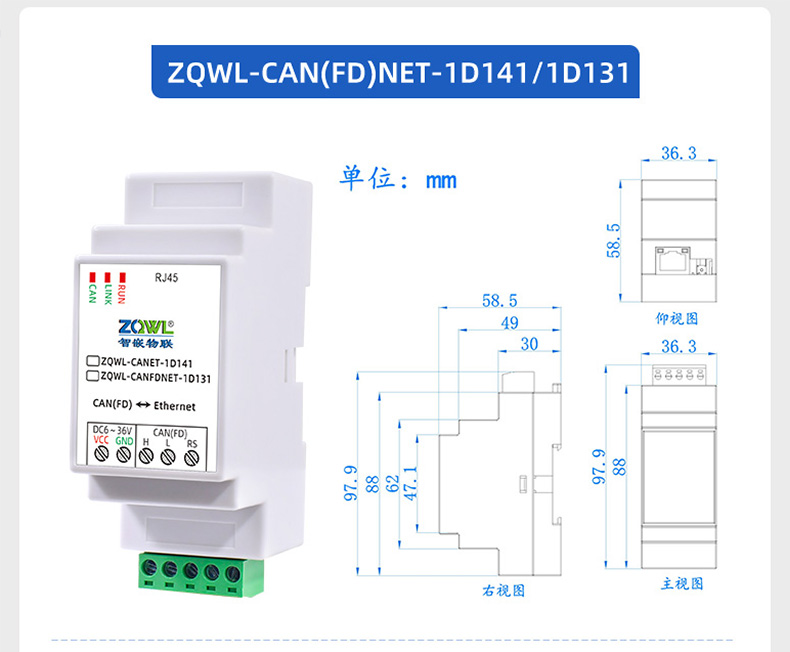 ZQWL-CANFDNET 系列产品,是智嵌物联开发的高性能工业级以太网与 CAN(FD)-bus数据转换的设备。设备型号齐全,按 CAN(FD)通道数可分为单路、双路和 4 路,CAN(FD)总线既有带隔离的,有非隔离的。按照网口数可以分为单网口和双网口(交换机功能),10/100M 自适应,其中双网口类型设备,非常方便用户级联使用。该系列所有产品均可工作在-40℃~85℃,其中隔离型产品具有优秀的抗电磁干扰性能,适用于电磁环境恶劣的的场合。