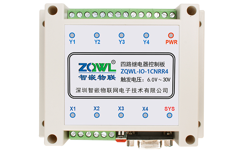 智嵌物联/ZQWL出品的 4 路串口继电器控制器,是实现 4 路开关量采集(输入)和 4 路继电器输出的 IO 控制板。控制板具有 RS232 和 RS485 通讯接口,可以通过 Modbus RTU 或自定义协议实现对该控制板的控制,也可以通过本公司开发的上位机控制软件控制。