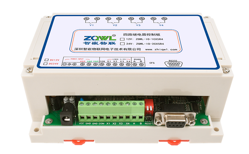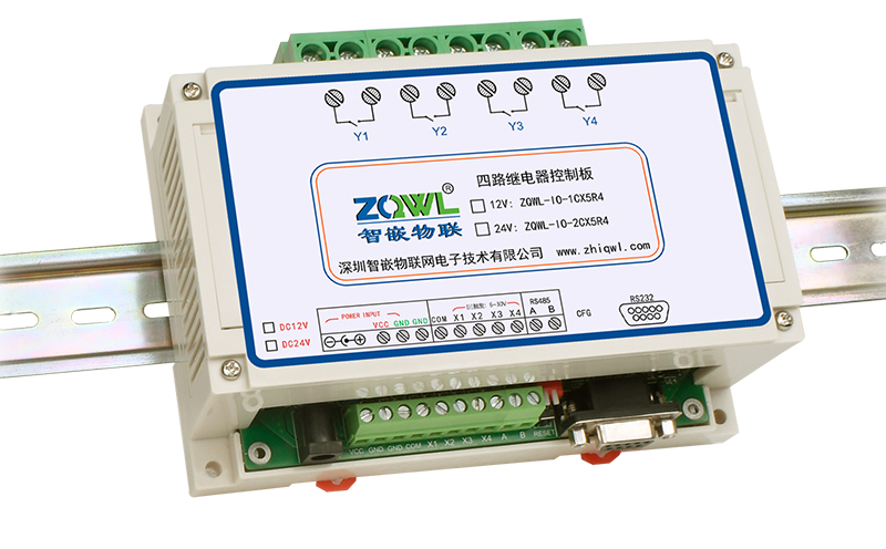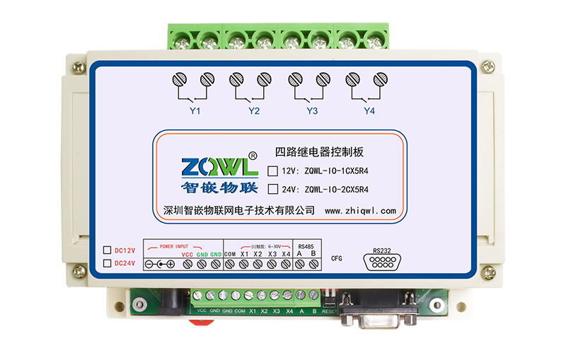 智嵌物联/ZQWL出品的 4 路串口继电器控制器,是实现 4 路开关量采集(输入)和 4 路继电器输出的 IO 控制板。控制板具有 RS232 和 RS485 通讯接口,可以通过 Modbus RTU 或自定义协议实现对该控制板的控制,也可以通过本公司开发的上位机控制软件控制。