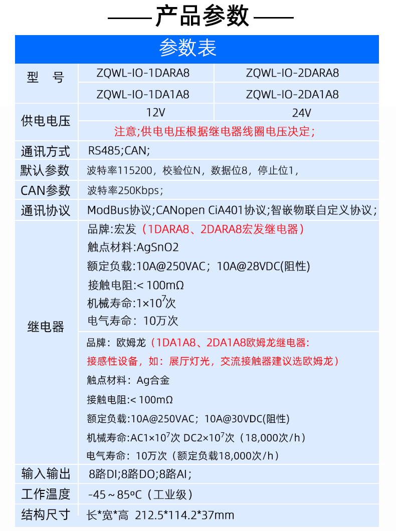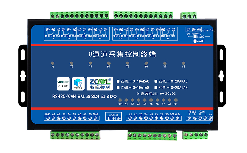 智嵌物联/ZQWL出品的8 路串口继电器控制器,是实现 8路AI ,8 路开关量采集(输入)和 8 路继电器输出的 IO 控制板。控制板具有 RS485 通讯接口,可以通过 Modbus RTU 或自定义协议实现对该控制板的控制,也可以通过本公司开发的上位机控制软件控制。