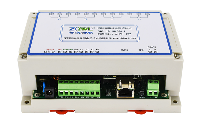 智嵌物联/ZQWL出品的 4 路网络继电器设备,是一款 4 路 NPN 和 PNP 兼容型光电输入、4 路继电器输出的工业级 IO 控制板。控制板具有 1 路以太网口和 1 路 RS485 通讯接口,可以通过 Modbus TCP/RTU 或自定义协议实现对该控制板的控制,也可以通过本公司开发的上位机控制软件控制。本控制板具有串口服务器功能(网络和 RS485 数据互相转换)。