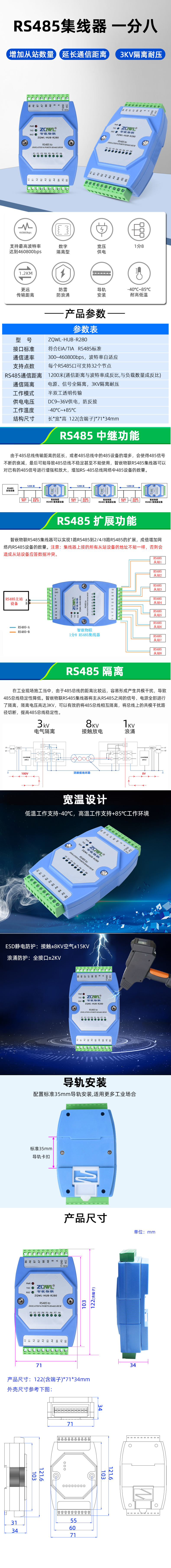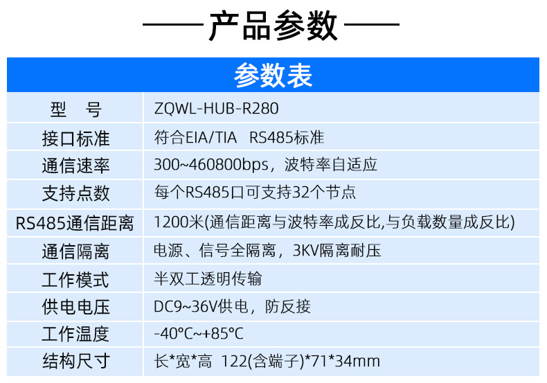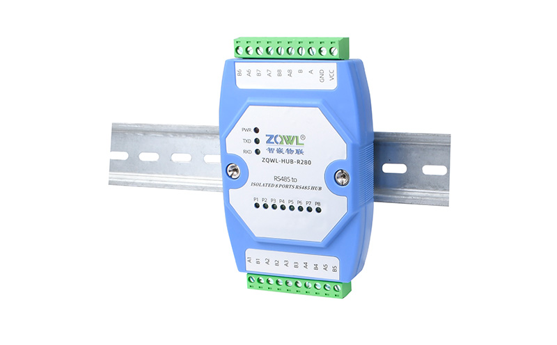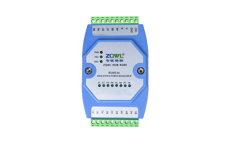 智嵌物联 ZQWL 自主研发的 ZQWL-HUB-R280,是一款工业级光电隔离的 RS485 集线器,可通过 RS485 主口,扩展出 8 路 RS485 从口,可有效解决工业施工现场星型布线、带载数量少、抗干扰能力不强等常见问题。