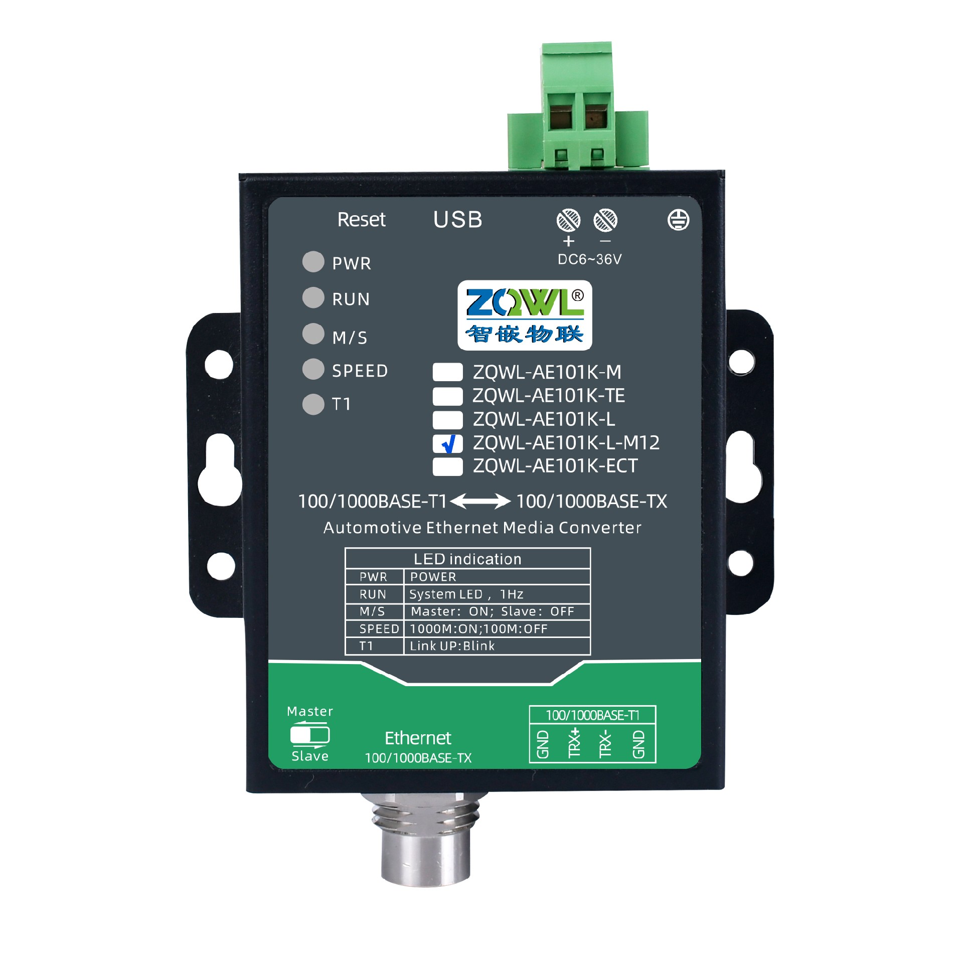 ZQWL-AE101K-L-M12千兆车载以太网转换器