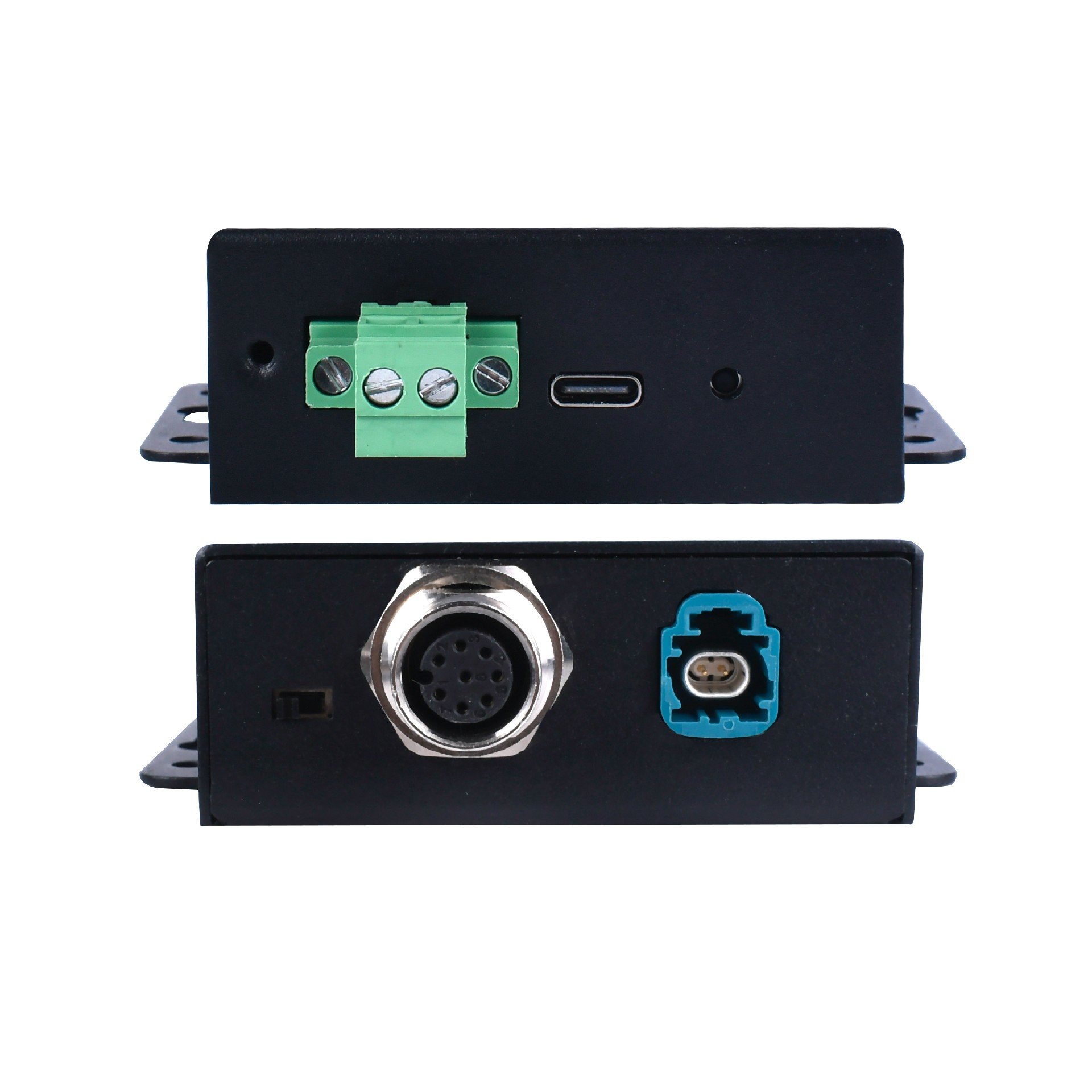 电源接口的物理接口采用5.08间距的OPEN端子,带固定螺丝,不惧震动。车载以太网接口采用H-MTD罗森博格端子。