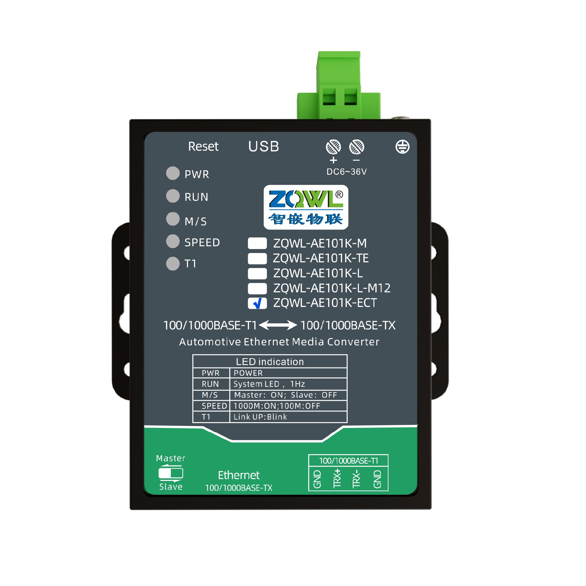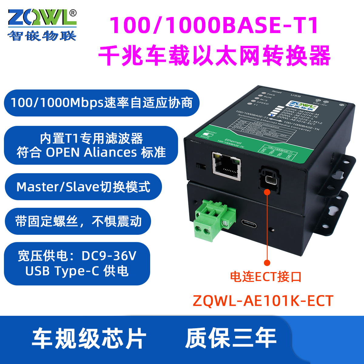 ZQWL-AE101K-ECT 千兆车载以太网转换器