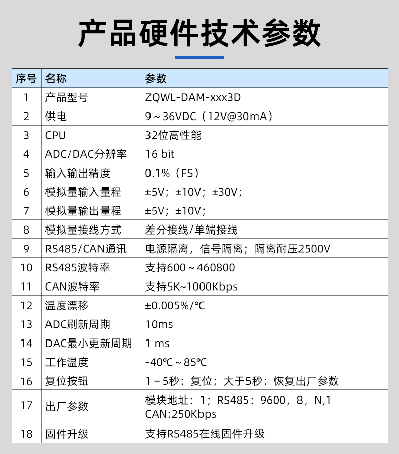 ZQWL-DAM-7223D-串口+CAN版+模拟量输入+输出