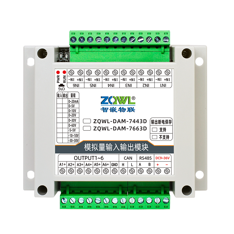 ZQWL-DAM-7443D-串口+CAN版+模拟量输入+输出