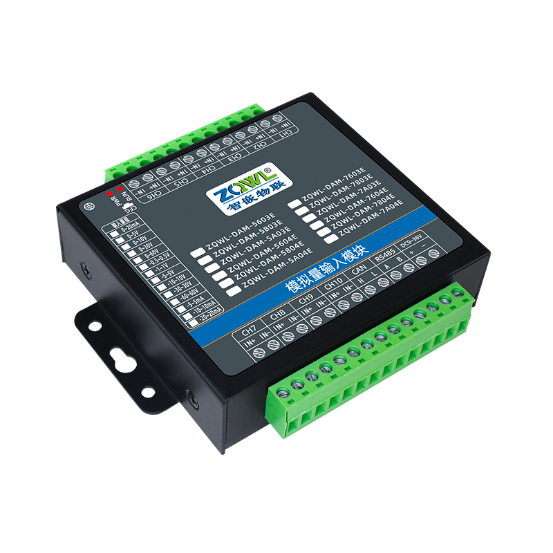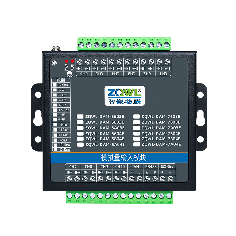ZQWL-DAM-7803E 串口版+CAN版 双极性模拟量输入系列是智嵌物联推出的高精度模拟量输入模块,输入量程可选:0~5V;0~10V;0~30V;0~60V;0~20mA,采集精度