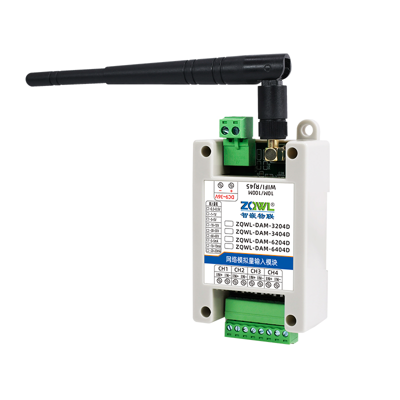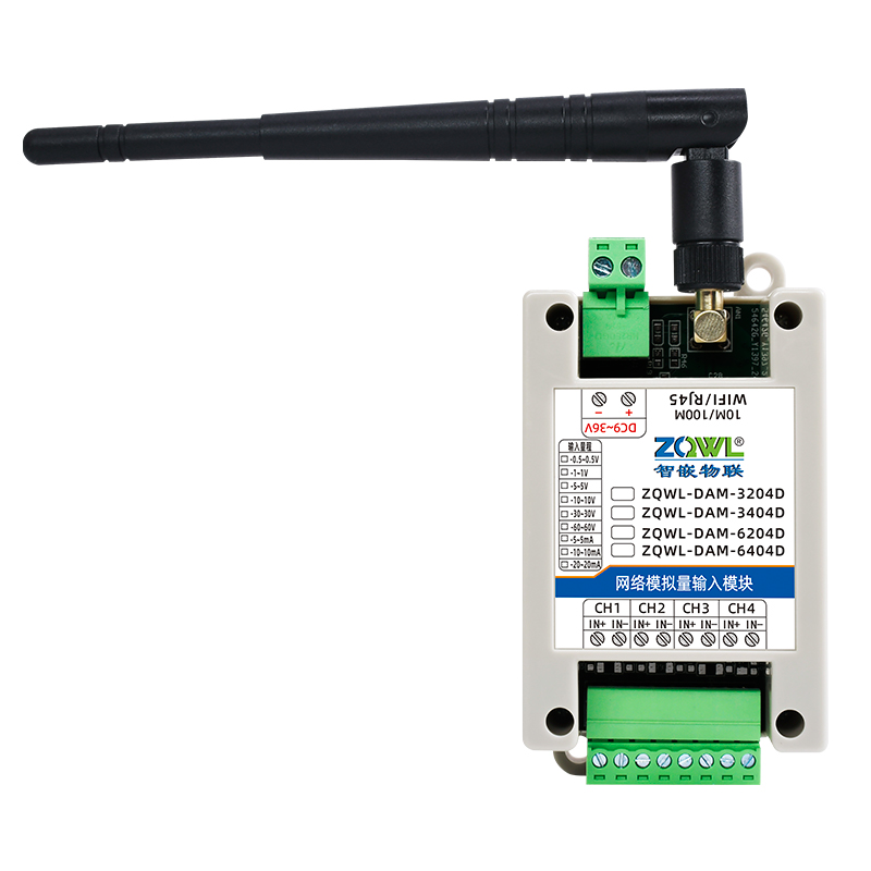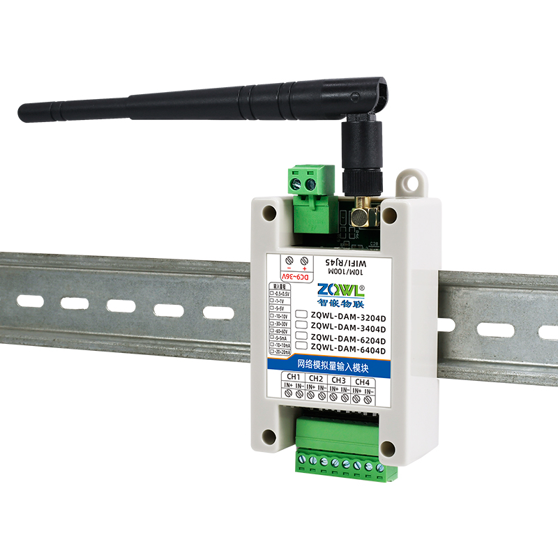 ZQWL-DAM-xx04D 模拟量输入系列是智嵌物联推出的高精度模拟量采集模块,采集量程可选:±0.5V;±1V;±5V;±10V;±30V;±60V;±5mA;±10mA;±20mA,内置1 个或2 个24 bit 的 ADC,采集精度 0.01%(万分之一)。