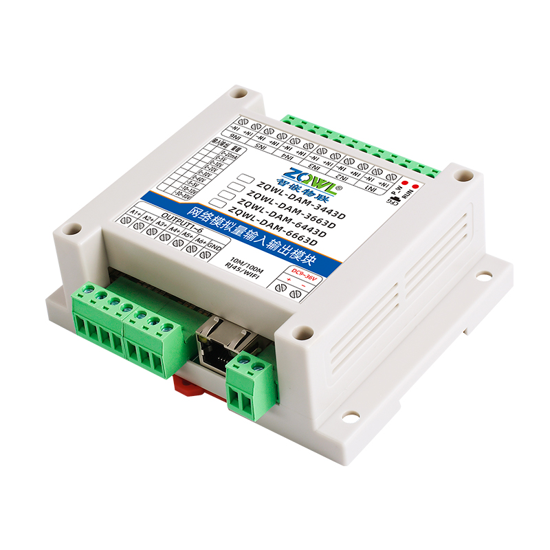 ZQWL-DAM-6路 单极性模拟量输入输出系列是智嵌物联推出的高精度模拟量输入和输出模块,输入量程可选:0~5V;0~10V;0~30V;0~60V;0~20mA,采集精度 0.1%。输出量程可选: 0~5V;0~10V;0~20V;0~20mA,输出精度 0.1%。模块带有 1 路网口或 WIFI,可以通过该接口上传数据。设备内部集成了 TCP/IP 协议栈,支持标准的 Modbus TCP/RTU、MQTT和 JSON 等协议;支持 TCP SERVER、TCP CLIENT、UDP SERVER、UDP CLIENT 等工作模式,提供 2 种数据输出格式:16 位无符号整型值输出和 32 位标准 IEEE-754 浮点数输出,使用灵活方便。