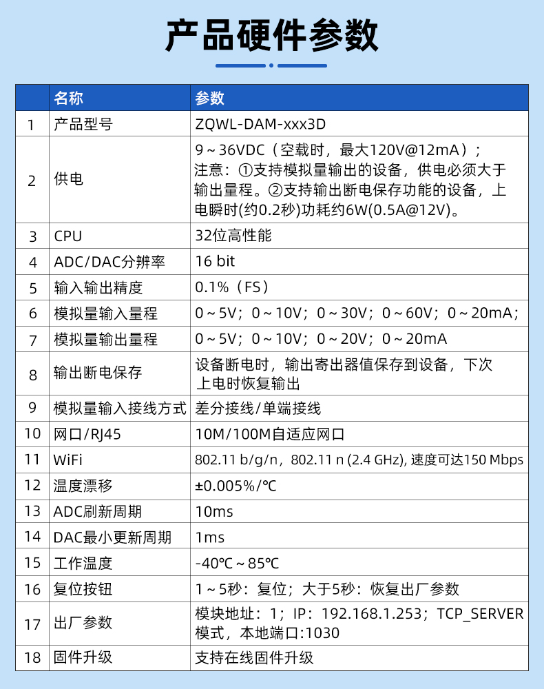 ZQWL-DAM-3883D-单极性输入输出+断电保存