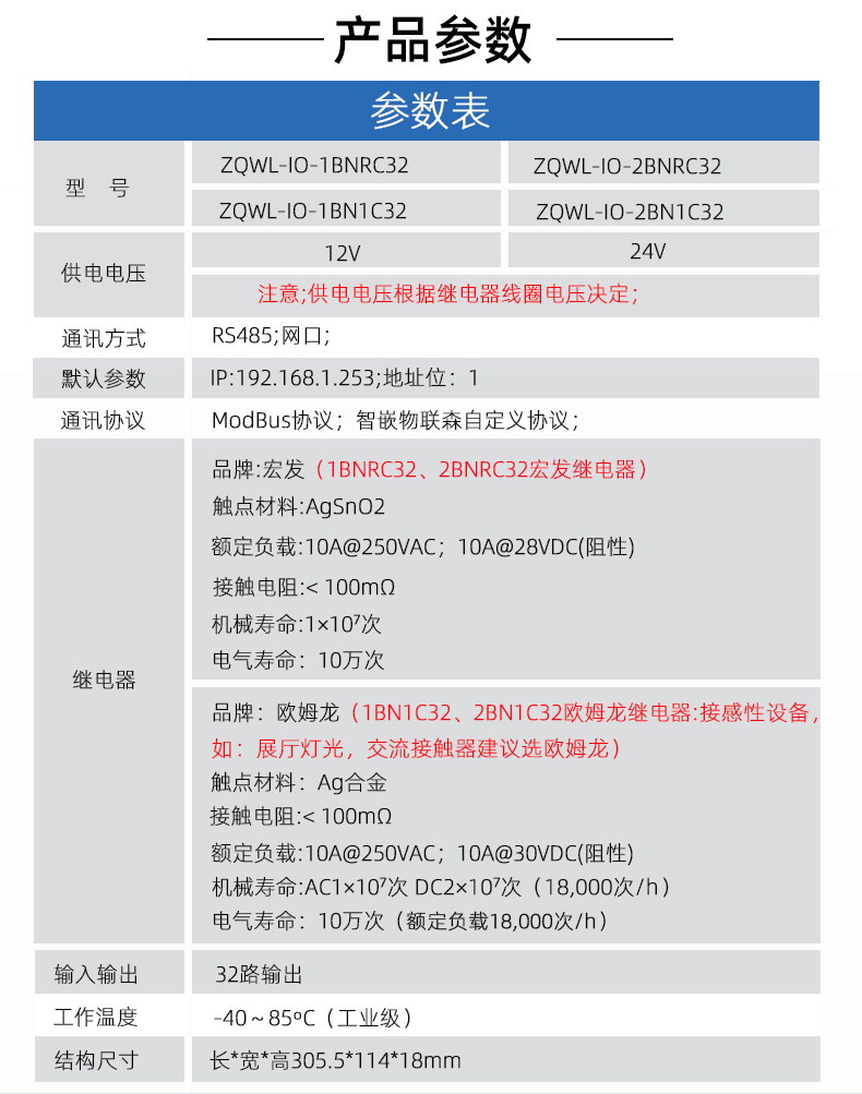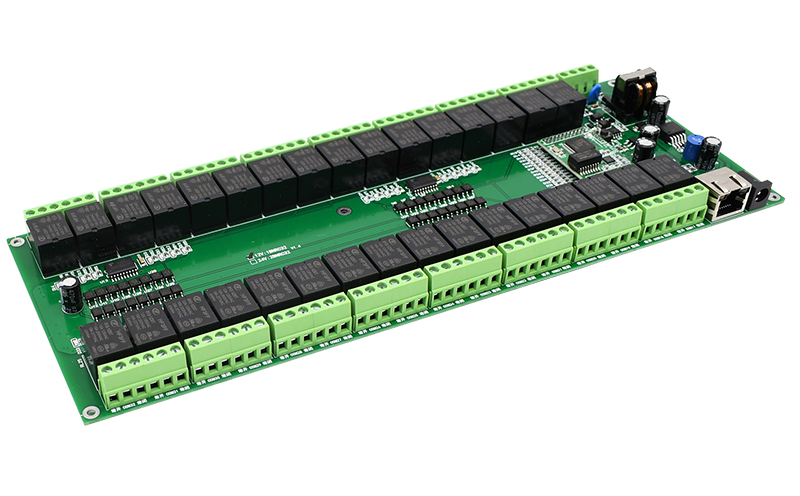 智嵌物联/ZQWL出品的 32 路网络继电器设备,是一款 32 路继电器输出的工业级 IO 控制板。控制板具有 1 路以太网口和 1 路 RS485 通讯接口,可以通过 Modbus TCP/RTU 或自定义协议实现对该控制板的控制,也可以通过本公司开发的上位机控制软件控制。本控制板具有串口服务器功能(网络和 RS485 数据互相转换)。
