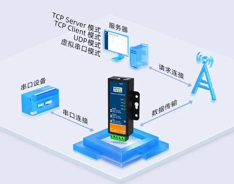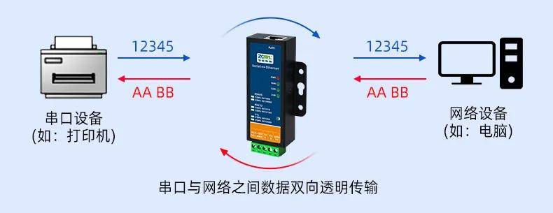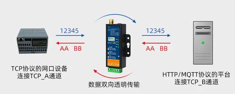 设备的透传模式是指串口与网口之间的数据透明传输,不做任何协议的转换。