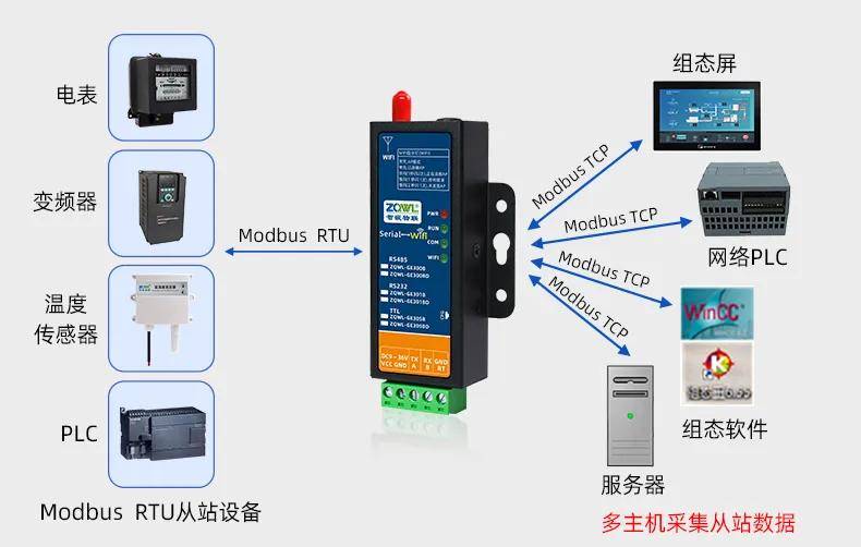 智嵌物联串口服务器在Modbus网关模式下支持常见的各种组态软件,只需简单设置即可实现ModbusTCP设备和ModbusRTU设备的通讯,全系列均支持ModbusTCP指令缓存,主动轮询RTU设备,大大提高Modbus TCP通讯速度。