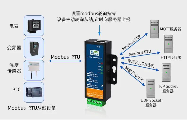 启用Modbus主动轮询功能后,用户服务器只需要接收数据,不需要再下发查询指令,可极大的缓解服务器的压力。