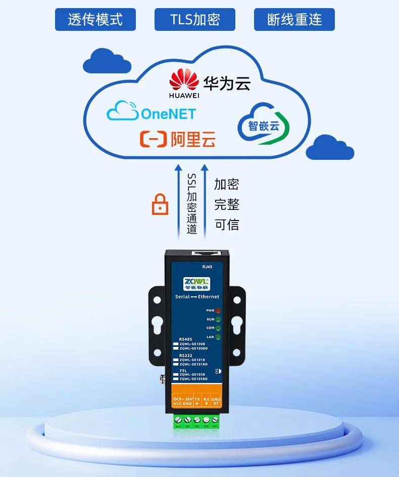 设备支持TCP/UDP SOCKET、HTTP、MOTT等多种协议,通过简单的配置即可实现接入智嵌云、阿里云、私有云等。